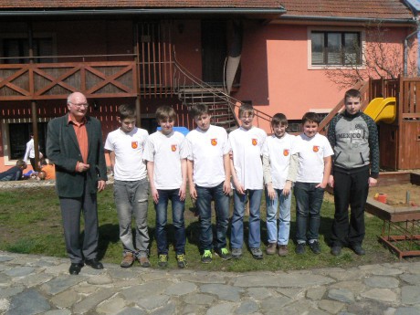 Družstvo Hošťálkové A v Dorostenecké lize pro sezónu 2012/13, Bezměrov, zleva: trenér František Veselský, Jakub Gálík, Jakub Krejča, Jaroslav Lukaštík (H), Karel Vraj, Ondřej Vraj, Adam Březina a trenér Josef Bednařík